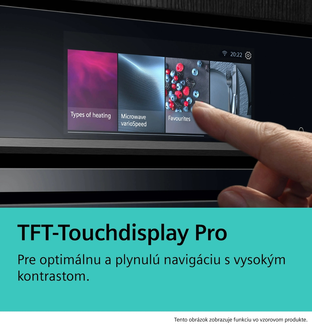 Vďaka kombinácii pary a horúceho vzduchu dosiahnete chrumkavý povrch a vláčne vnútro aj pri náročnejších receptoch. Intuitívny TFT dotykový displej umožňuje pohodlné ovládanie a výber automatických programov bez zbytočnej zložitosti.