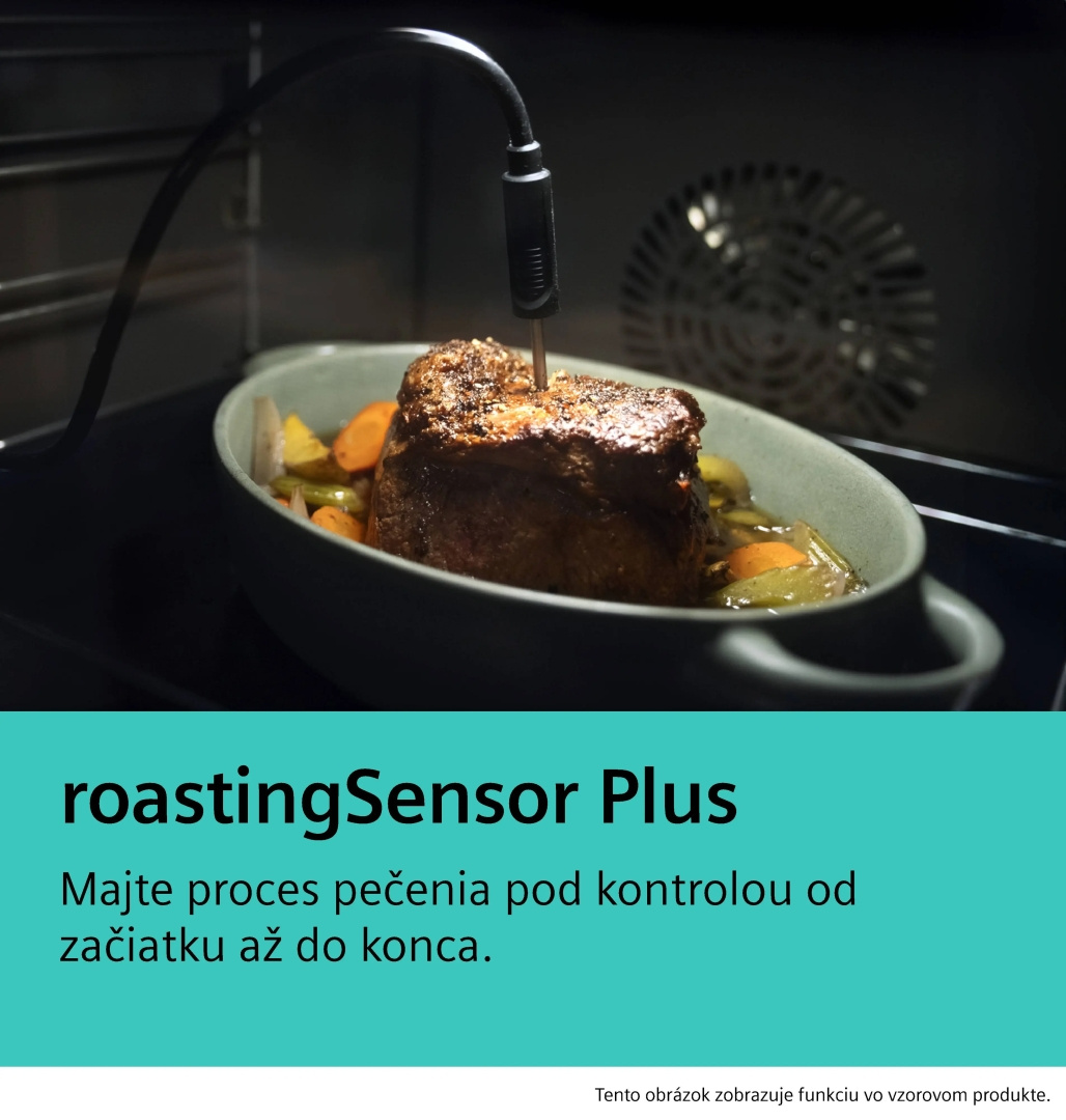 Senzor roastingSensor Plus meria teplotu v troch bodoch a zaručuje precízne prepečenie mäsa, hydiny aj rýb pre vždy dokonalý výsledok. Po pripojení k aplikácii Home Connect navyše získate prehľad o odhadovanom čase prípravy, takže máte celý proces pod kontrolou a vaše pokrmy budú šťavnaté aj chrumkavé.